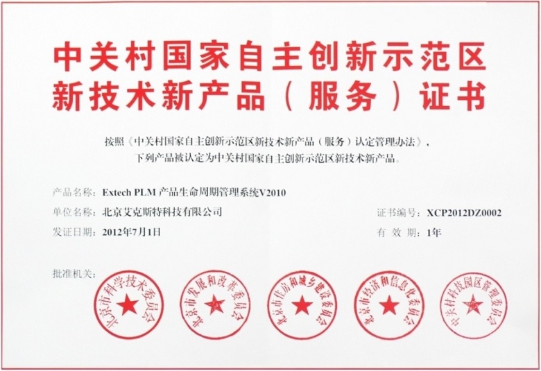 Extech PLM 软件产品登记证书