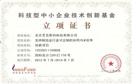 科技部科技型中小企业技术创新基金立项证书