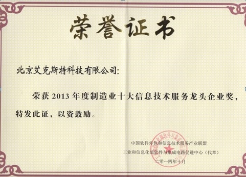 工信部制造业十大信息技术服务龙头企业奖