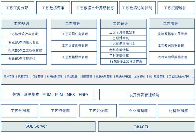 搭建面向企业的工艺管理信息集成平台,规范工艺设计管理规范,建立高效协同工作环境,整合工艺数据,形成工艺知识积累和沉淀体系,实现数据统一管理和高度共享的目标。将业务流程固化到计算机管理系统中执行,使低效率、重复性的手工劳动转为自动化流程,实现无纸化管理。