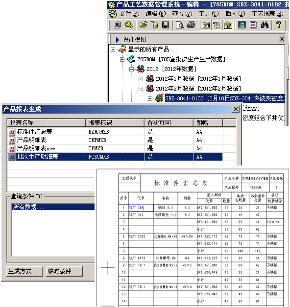 中电22所某部属于典型的模块化工艺设计、按订单生产模式,即设计部门按产品进行设计,产品由若干部件和零件组成,但订单并不完全按产品进行订货,每个订单中可能包含完整的产品,也可能包含的是某个产品的某些零部件,甚至是完整产品与零部件的组合,因此,工艺部门必须对组成产品的零部件分模块化设计,按订单BOM组织计算汇总每个订单的工艺过程、材料定额和其它报表,以组织生产。