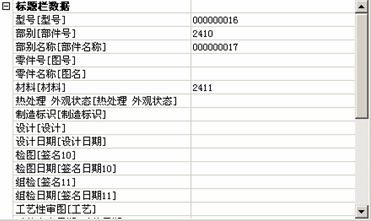 申请到的零件流水码、分类码、毛坯流水码、分类码数据按照相应的配置,写到图纸标题栏的对应属性中去,见下图: