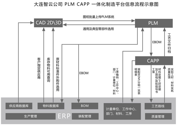 近年来大连智云公司的信息化项目实施以提升企业产品创新、快速制造、精益制造为目的,同时建立企业产品设计库、产品模型库、物料数据库、计划数据库、生产数据库、客户数据库、供应商数据库等数据库,以实现企业的动态管理及信息化的生产、管理方式。同时,通过实施信息化建设,梳理了企业内部流程管控,并得到进一步完善和改进,建立更为科学合理的企业内部运营管理平台,促进管理效率提升,为持续性发展和扩张做好管理基础。