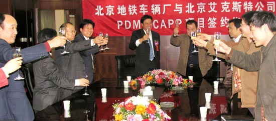 4月17日下午,在北京清华科技园创新大厦日韩精品亚洲电影天堂-免费无码毛片一区二区A片-国产精品一区二555-69久久夜色精品国产69-中文字幕亚洲永久在线总部,举行了一场别开生面弥漫着香槟、鲜花芳香的签约仪式。北京市地铁运营有限公司车辆厂(简称北京地铁车辆厂)与日韩精品亚洲电影天堂-免费无码毛片一区二区A片-国产精品一区二555-69久久夜色精品国产69-中文字幕亚洲永久在线正式签署了“PDM&CAPP系统”应用实施项目的合作协议,成为日韩精品亚洲电影天堂-免费无码毛片一区二区A片-国产精品一区二555-69久久夜色精品国产69-中文字幕亚洲永久在线信息化推进工程的又一个战略合作伙伴。北京地铁车辆厂的厂长、总工以及技术人员和北京日韩精品亚洲电影天堂-免费无码毛片一区二区A片-国产精品一区二555-69久久夜色精品国产69-中文字幕亚洲永久在线公司的王总、项目总负责人及公司其他重要领导共同出席了此次签约仪式。