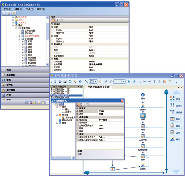 Extech PLM生命周期管理可以持续改进和自动执行业务过程和工作程序,从而能够在提升企业竞争能力时扮演重要的角色。使用Extech PLM可视化过程编辑器轻松地定义几乎所有企业内外部所使用的工作流程。工作流程开始后,任务将被同时自动分发给企业内部和外部参与者。参与者可以实时接收并协同各种资源快速执行任务。并且通过直观地监控和管理工作流过程,业务主管可以重新分配任务以平衡工作量或减轻瓶颈效应。